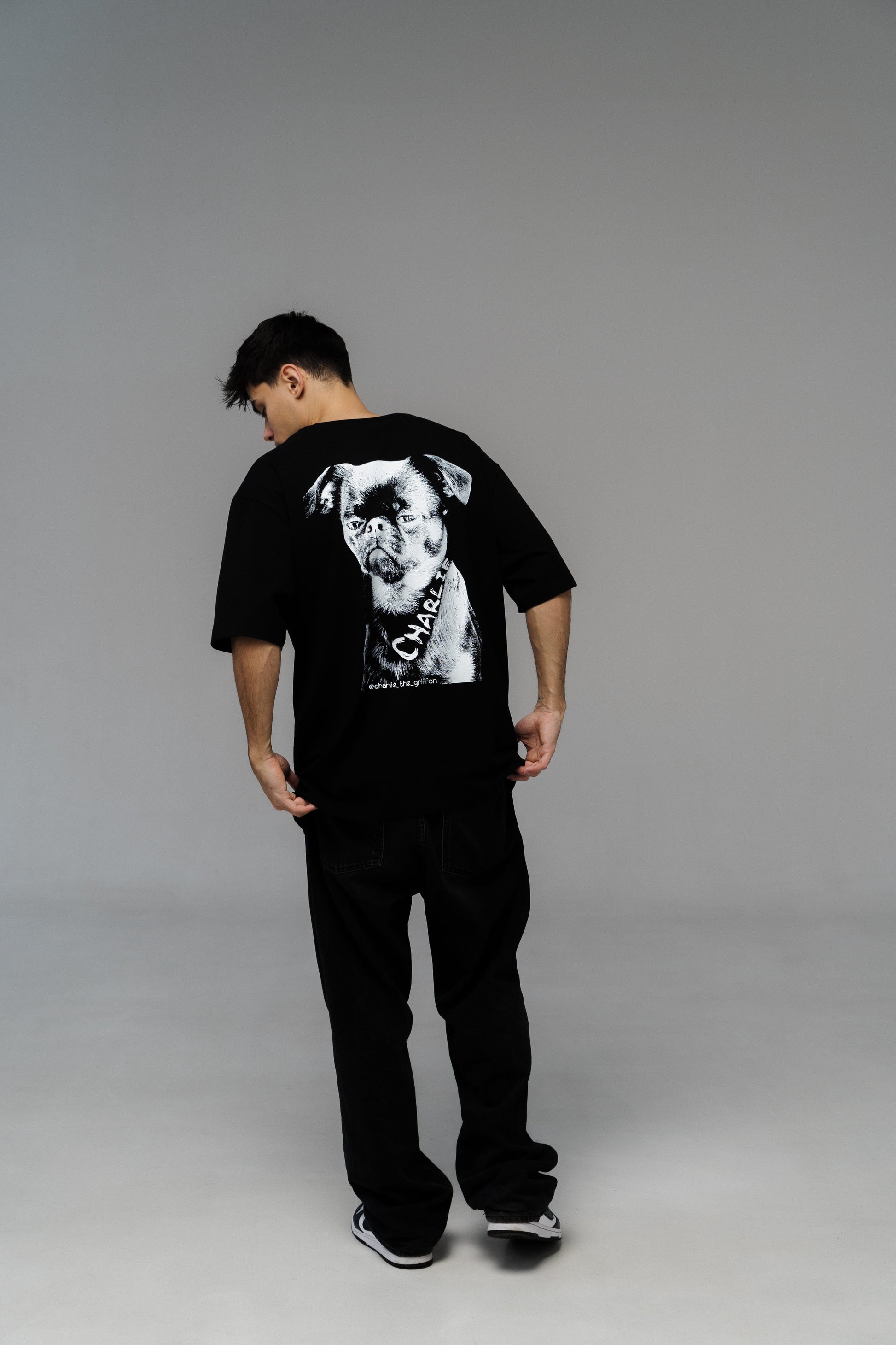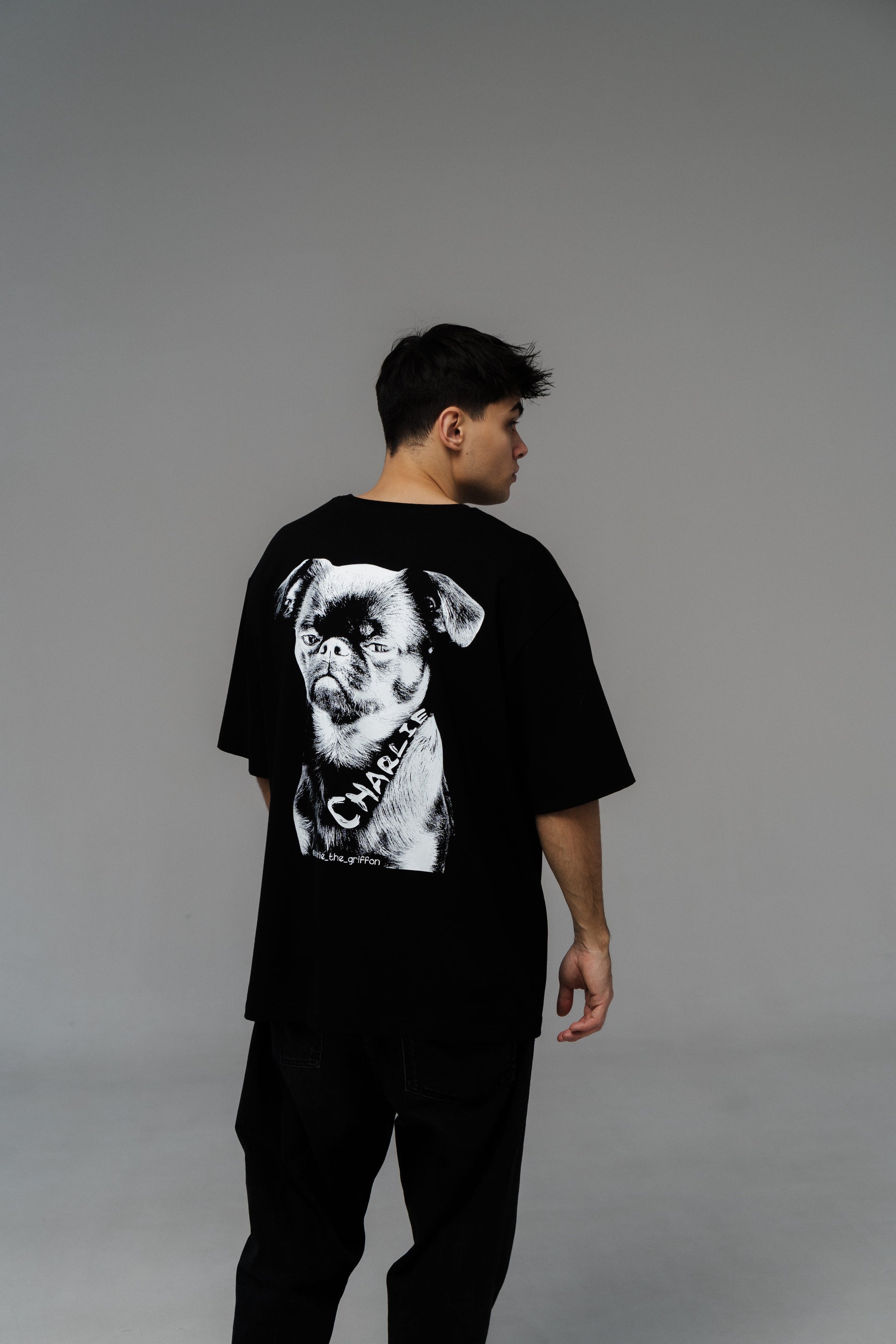 Black Oversized Unisex T-Shirt with "Charlie Griffon" Print – Premium Style from Zlitay